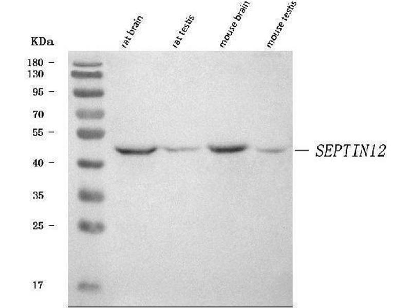 - Anti-SEPTIN12 Antibody (ABIN7602363). Tested in ELISA, WB applications. This antibody reacts with Human, Mouse, Rat. This is a premium antibody that guarantees superior quality, high affinity, and strong signals with minimal background in Western blot applications.