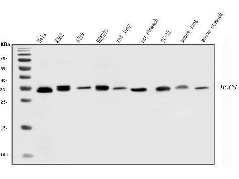 - Anti-HCCS Antibody (ABIN7602424). Tested in ELISA, Flow Cytometry, IF, IHC, ICC, WB applications. This antibody reacts with Human, Mouse, Rat. This is a premium antibody that guarantees superior quality, high affinity, and strong signals with minimal background in Western blot applications.