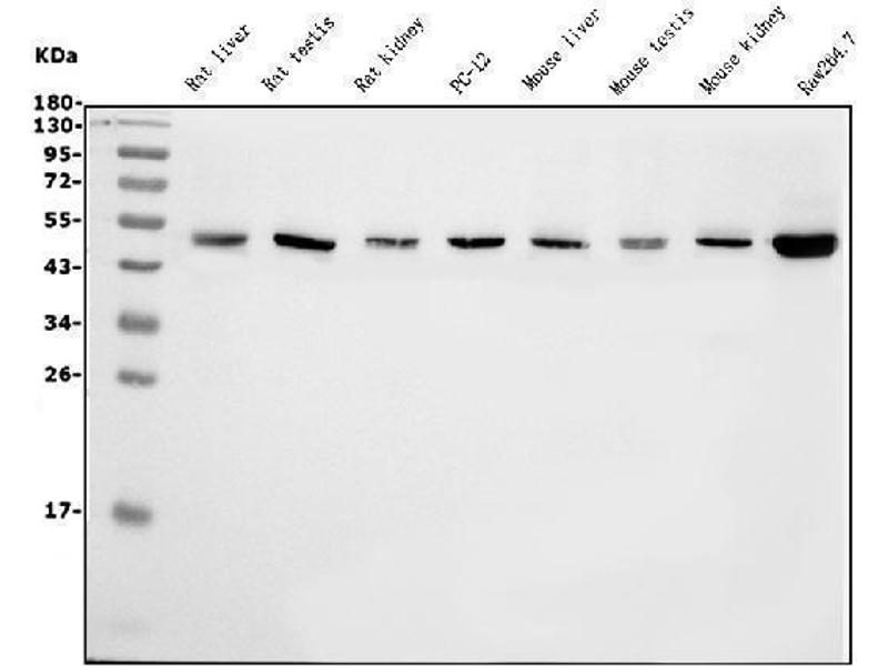 Western blot, 0.25-0.5 μg/mL, Human, Mouse, Rat