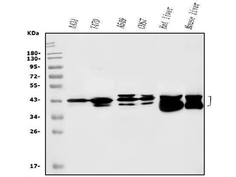 Western blot, 0.25-0.5 μg/mL, Human, Mouse, Rat, Monkey