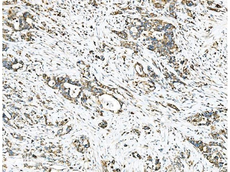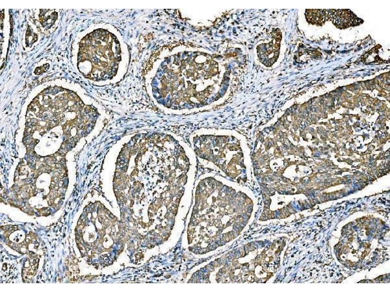 Background: Ezrin also known as cytovillin or villin-2 is a protein that in humans is encoded by the EZR gene. The cytoplasmic peripheral membrane protein encoded by this gene functions as a protein-tyrosine kinase substrate in microvilli. As a member of the ERM protein family, this protein serves as an intermediate between the plasma membrane and the actin cytoskeleton. This protein plays a key role in cell surface structure adhesion, migration and organization, and it has been implicated in various human cancers. A pseudogene located on chromosome 3 has been identified for this gene. Alternatively spliced variants have also been described for this gene.