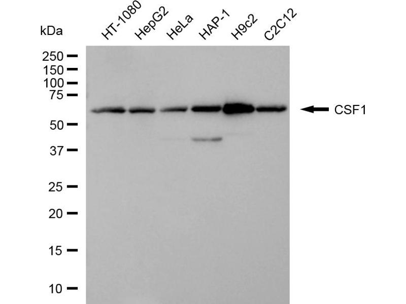 L’anticorps anti-M-CSF/CSF1 Polyclonal Lapin est utilisé pour la détection de M-CSF/CSF1 dans des échantillons de Humain. Il a été validé pour WB.