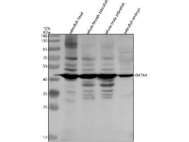 Anti-Zebrafish GATA4 Antibody catalog # AZQ09JY7. Tested in WB applications. This antibody reacts with Zebrafish. This is a premium antibody that guarantees superior quality, high affinity, and strong signals with minimal background in Western blot applications.