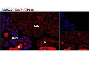 Immunohistochemistry: Positive staining in the submandibular salivary gland of the mouse, while cells remain negative in the sublingual salivary gland. Data provided by Everest Grant winner Melinda Larsen State University of New York, Albany, NY. A publi