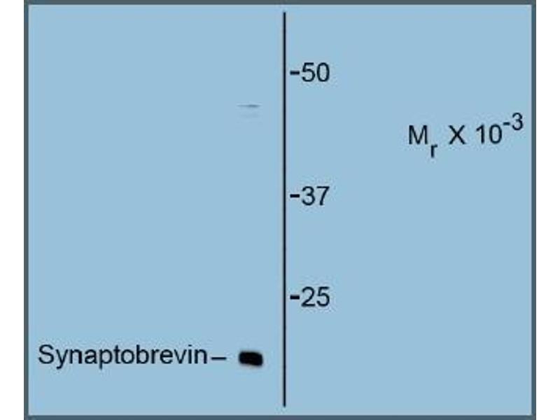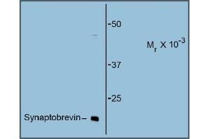 - The antibody is specific for the ~16 kDa synaptobrevin protein in Western blots of rat brain lysate.