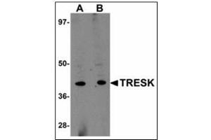 This antibody reacts to the internal region of Potassium Channel, Subfamily K, Member 18 (KCNK18).