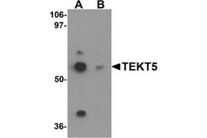 Tektins are insoluble alpha-helical proteins related to intermediate filament proteins and are essential for the assembly of cilia and flagella. Tektin-5 (TEKT5) is a recently identified member of the Tektin family. It is predominantly expressed in testis, and its expression is upregulated during testis development. It is present in sperm flagella but not in heads, suggesting that it may act as a middle component required for flagellar stability and sperm mobility.Synonyms: TEKT5