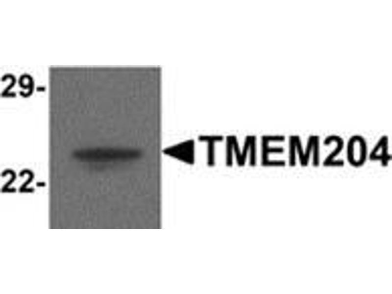 Transmembrane protein 204 (TMEM204) is a four-transmembrane protein that is induced under hypoxic conditions. It localizes to cell-cell junctions and co-localizes with the ?-catenin adherens junction-associated protein, but not with tight junctions. Overexpression of TMEM204 results in decreased adhesion between cells, indicating that TMEM204 is an adherens junction protein that modulates cell adhesion and potentially angiogenesis. Recent evidence suggests TMEM204 may also be involved in epilepsy.Synonyms: C16orf30, Claudin-like protein 24, Transmembrane protein 204