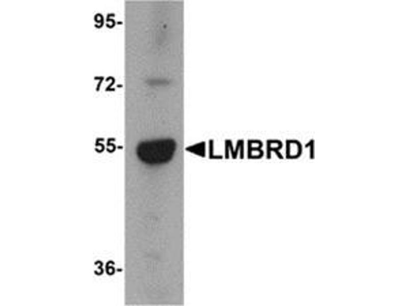 LMBRD1, also known as NESI (nuclear export signal-interacting protein, is a lysosomal membrane protein that is thought be involved in the transport and metabolism of cobalamin. LMBRD1 was initially identified as interacting with the large form of the hepatitis delta antigen and may be required for the nucleocytoplasmic shuttling of the hepatitis delta virus. Mutations in this gene are associated with the vitamin B12 metabolism disorder termed, homocystinuria-megaloblastic anemia complementation type F (cblF).Synonyms: C6orf209, HDAg-L-interacting protein NESI, LMBR1 domain-containing protein 1, NESI, Nuclear export signal-interacting protein, Probable lysosomal cobalamin transporter