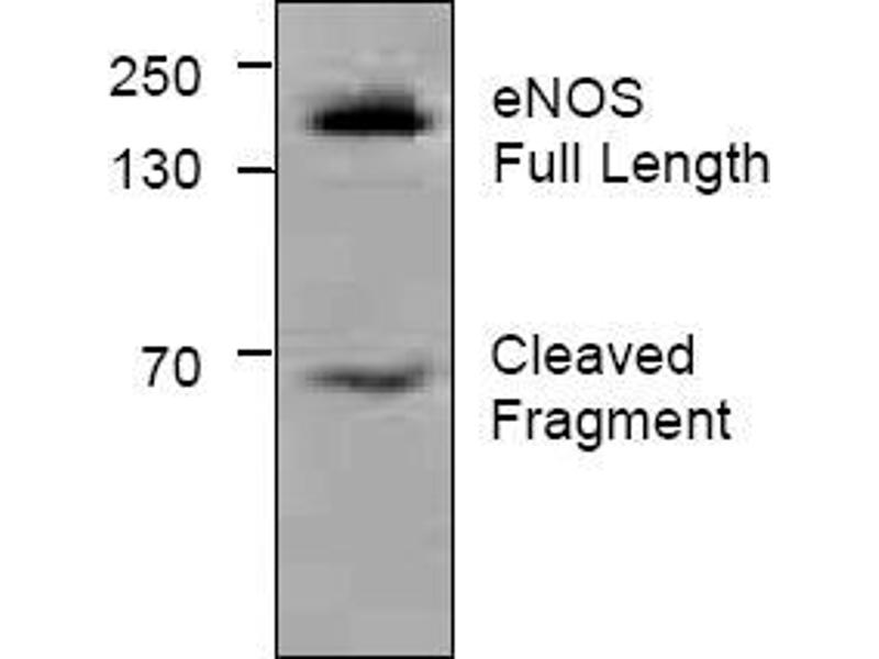 - The antibody recognizes 140 kDa eNOS.