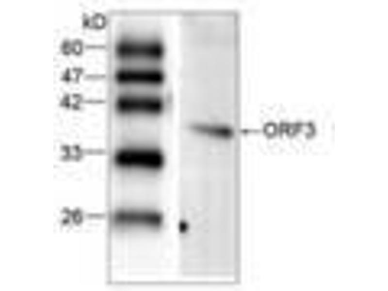 - Anti-Hepatitis E virus ORF 3 recognizes recombinant protein Hepatitis E virus ORF 3.