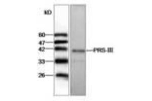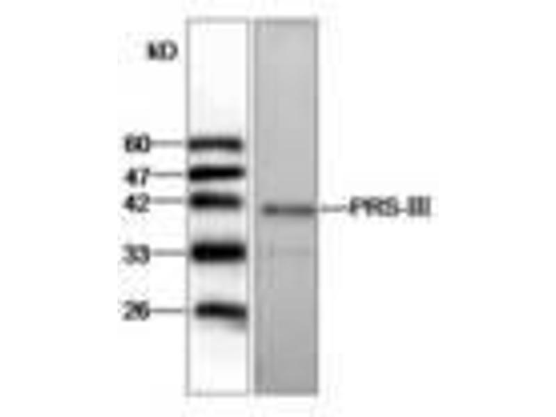- Anti-PRS-III recognizes PRS-III expression in SW480 whole cell lysate.