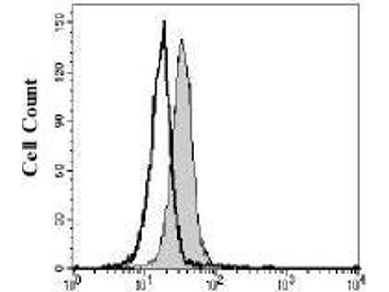 This antibody has been tested for flow cytometry using A20 cells.- Cells may be Fc-blocked with 1ug of mouse IgG/10e5 cells for 15 minutes at room temperature. Do not wash excess blocking IgG from this reaction.