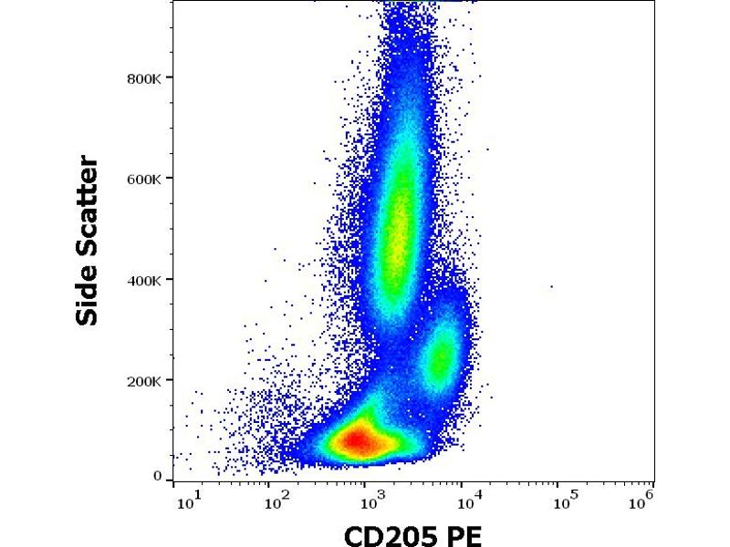 Lymphocyte antigen 75,CD205, also known as DEC-205, is an endocytic receptor of macrophage mannose receptor family. This 205 kDa C-type lectin transmembrane protein mediates adsorptive uptake and its intracellular domain contains coated pit localization sequence and distal acidic motif, which is required for recycling beyond early endosomes through deeper MHC II+ late endosomes and lysosomes. This unique pathway of receptor-mediated uptake proves to be necessary for presentation of antigenic peptides at low doses of ligand. CD205 is responsible for uptake and processing of captured antigens for dendritic cells.,DEC-205, LY75, CLEC13B