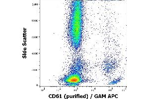 The mouse monoclonal antibody VIPL2 recognizes an extracellular epitope of CD61, a 90-110 kDa transmembrane glycoprotein of integrin family, expressed on platelets, megacaryocytes, osteoclasts, endothelial cells and other cell types, including leucocytes and smooth muscle cells.