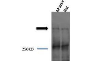 1 μg/ml of ABIN863197 was sufficient for detection of Piccolo in 10 μg of rat brain tissue lysate by colorimetric immunoblot analysis using goat ant rabbit IgG:HRP as the secondary antibody.