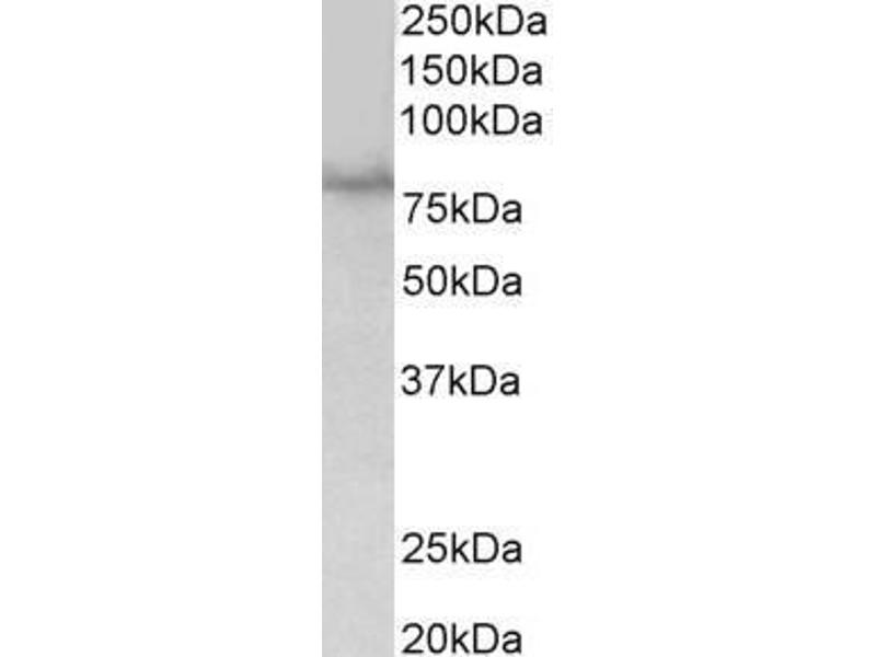 Western Blot: Approx 80 kDa band observed in lysates of cell line HEK293 (calculated MW of 85.5 kDa according to NP_005059.2). Recommended concentration: 1-3 μg/mL.