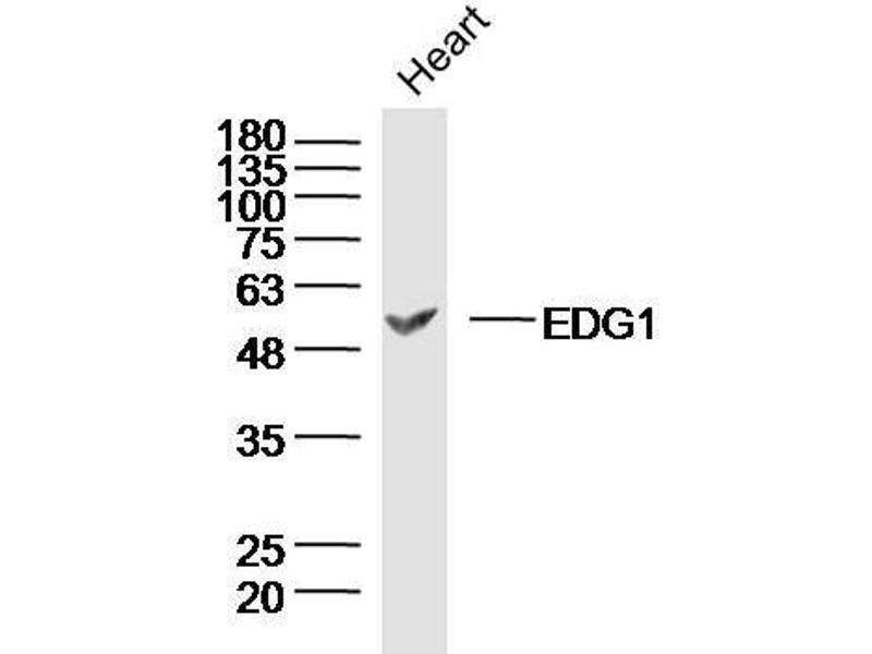 Background: G-protein coupled receptor for the bioactive lysosphingolipid sphingosine 1-phosphate (S1P) that seems to be coupled to the G(i) subclass of heteromeric G proteins. Signaling leads to the activation of RAC1, SRC, PTK2/FAK1 and MAP kinases. Plays an important role in cell migration, probably via its role in the reorganization of the actin cytoskeleton and the formation of lamellipodia in response to stimuli that increase the activity of the sphingosine kinase SPHK1. Required for normal chemotaxis toward sphingosine 1-phosphate. Required for normal embryonic heart development and normal cardiac morphogenesis. Plays an important role in the regulation of sprouting angiogenesis and vascular maturation. Inhibits sprouting angiogenesis to prevent excessive sprouting during blood vessel development. Required for normal egress of mature T-cells from the thymus into the blood stream and into peripheral lymphoid organs. Plays a role in the migration of osteoclast precursor cells, the regulation of bone mineralization and bone homeostasis (By similarity). Plays a role in responses to oxidized 1-palmitoyl-2-arachidonoyl-sn-glycero-3-phosphocholine by pulmonary endothelial cells and in the protection against ventilator-induced lung injury.