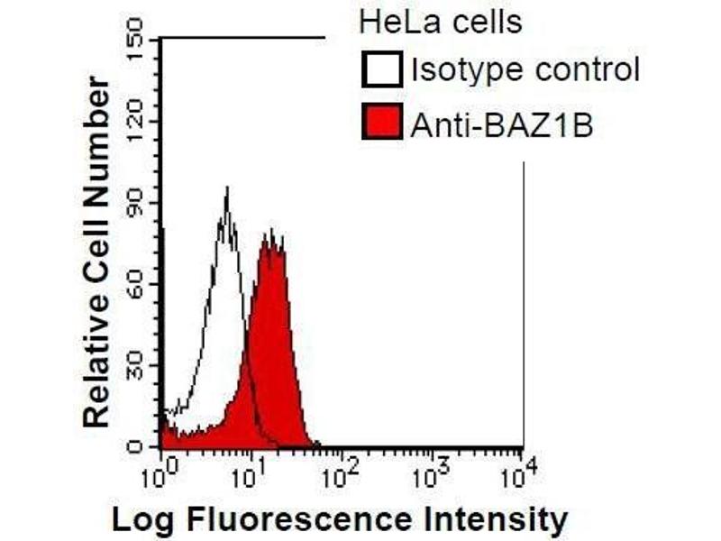 This gene encodes a member of the bromodomain protein family. The bromodomain is a structural motif characteristic of proteins involved in chromatin-dependent regulation of transcription. This gene is deleted in Williams-Beuren syndrome, a developmental disorder caused by deletion of multiple genes at 7q11.23. Synonyms: Monoclonal BAZ1B antibody, Anti-BAZ1B antibody, Bromodomain adjacent to zinc finger domain antibody.