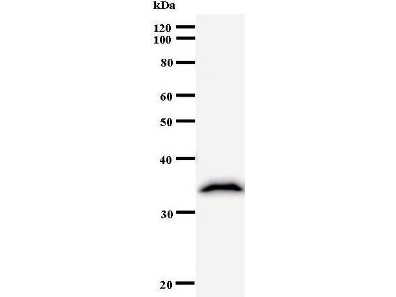 MAML3 antibody in PBS (3.0 mM KCl, 1.5 mM KH2 PO4 , 140 mM NaCl, 8.0 mM Na2 HPO4 (pH 7.4)) containing 1 % bovine serum albumin (BSA) and 0.05 % sodium azide (NaN3 ).