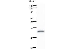 - OVOL1 antibody in PBS (3.0 mM KCl, 1.5 mM KH2 PO4 , 140 mM NaCl, 8.0 mM Na2 HPO4 (pH 7.4)) containing 1 % bovine serum albumin (BSA) and 0.05 % sodium azide (NaN3 ).