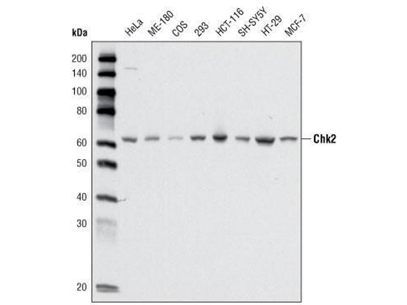 - CHK2 antibody was raised in Mouse using a purified recombinant fragment of human CHK2 (aa481-531) expressed in E. coli as the immunogen.