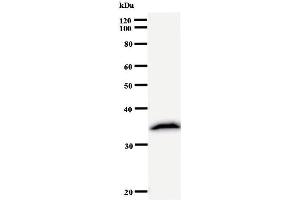 RPP30 antibody in PBS (3.0 mM KCl, 1.5 mM KH2 PO4 , 140 mM NaCl, 8.0 mM Na2 HPO4 (pH 7.4)) containing 1 % bovine serum albumin (BSA) and 0.05 % sodium azide (NaN3 ).