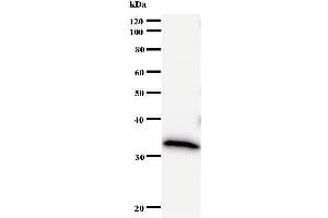 DNMT3 B antibody in PBS (3.0 mM KCl, 1.5 mM KH2 PO4 , 140 mM NaCl, 8.0 mM Na2 HPO4 (pH 7.4)) containing 1 % bovine serum albumin (BSA) and 0.05 % sodium azide (NaN3 ).