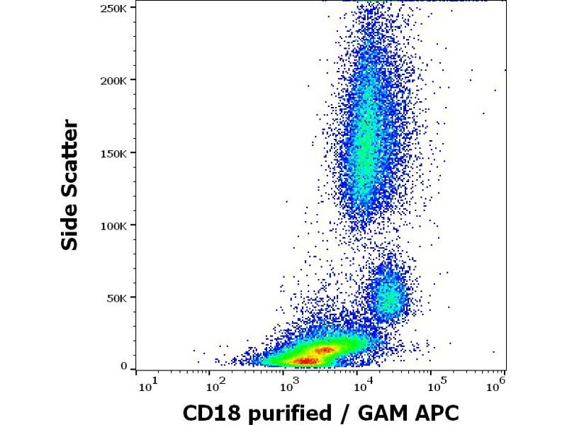 The antibody MEM-148 recognizes an extracellular epitope on CD18 which is essentially inaccessible in intact integrin molecules on resting leukocytes, but is exposed on high-affinity state of LFA-1 or on unassociated CD18. CD18 (integrin beta2 subunit, beta2 integrin) is a 90-95 kDa type I transmembrane protein expressed on all leukocytes.