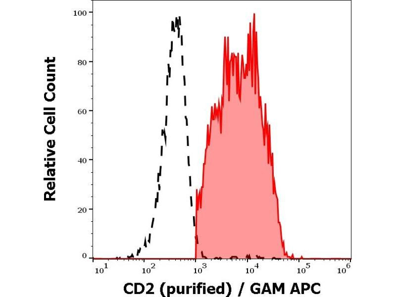The antibody MEM-65 recognizes a unique extracellular epitope of CD2, a 50 kDa glycoprotein present on the human peripheral blood T-lymphocytes and NK cells, also expressed by all thymocytes.