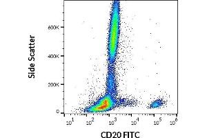MS4A1,CD20 is a cell surface 33-37 (depending on the degree of phosphorylation) kDa non-glycosylated surface phosphoprotein expressed on mature and most malignant B cells, but not stem cells or plasma cells (low number of the CD20 has been also detected on a subpopulation of T lymphocytes and it can be expressed on follicular dendritic cells). Its expression on B cells is synchronous with the expression of surface IgM. CD20 regulates transmembrane calcium conductance (probably functioning as a component of store-operated calcium channel), cell cycle progression and B-cell proliferation. It is associated with lipid rafts, but the intensity of this association depends on extracellular triggering, employing CD20 conformational change and/or BCR (B cell antigen receptor) aggregation. After the receptor ligation, BCR and CD20 colocalize and then rapidly dissociate before BCR endocytosis, whereas CD20 remains at the cell surface. CD20 serves as a useful target for antibody-mediated therapeutic depletion of B cells, as it is expressed at high levels on most B-cell malignancies, but does not become internalized or shed from the plasma membrane following mAb treatment.,B1, S7, MS4A, Bp35, CVID5, LEU-16
