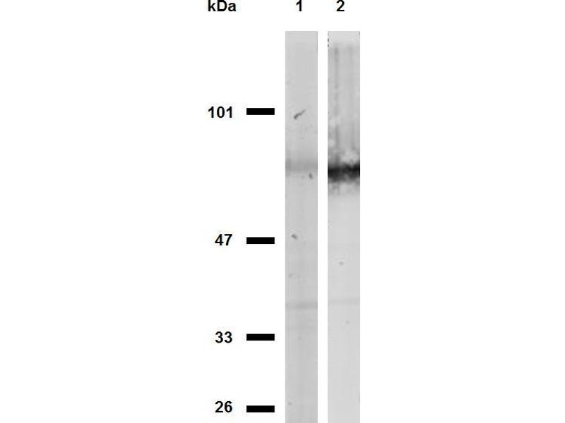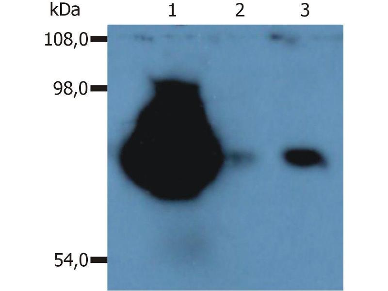 Western blotting: Recommended dilution: 2 μg/mL, 60 min on vertical incubator, positive control: Kg-1a human acute leukemia cell lysate, JURKAT human leukemia T-cell lysate, non-reducing conditions, 6 % separating gel.
