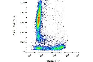 CD45RA is a high molecular weight isoform of a receptor-type protein tyrosine phosphatase, CD45 glycoprotein. CD45 is crucial in lymphocyte development and antigen signaling, serving as an important regulator of Src-family kinases, promotes cell survival by modulating integrin-mediated signal transduction pathway and is also involved in DNA fragmentation during apoptosis. CD45 isoforms differ in their extracellular domains, whereas they share identical transmembrane and cytoplasmic domains. These isoforms differ in their ability to translocate into the glycosphingolipid-enriched membrane domains and their expression depends on cell type and physiological state of the cell. CD45RA is expressed e.g. on naïve T cells and normal plasma cells.,PTPRCR, T200RA