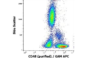 CD48 Molecule,CD48 (Blast-1) belongs to the CD2 subset of the Ig superfamily, which includes CD2, CD2F-10, CD58, CD84, CD150, CD229, CD244 and others. These molecules bind to the same or another members of their family, thus mediate homotypic or heterotypic adhesion. CD48 is a GPI-anchored protein broadly expressed on hematopoietic cells and serves as a high affinity ligand for 2B4 and low affinity ligand for CD2. 2B4-CD48 interaction among NK cells and NK-T cells regulates cell proliferation. Signaling through CD48 results in eosinophil activation and CD48 expression is increased in several infectious diseases.,BCM1, BLAST, BLAST1, SLAMF2