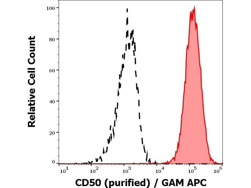 The antibody MEM-171 recognizes an extracellular epitope in the D2 domain of CD50 (ICAM-3), a 120-130 kDa type I membrane protein (immunoglobulin supergene family) expressed on leukocytes, endothelial cells and Langerhans cells, it is negative on platelets and erythrocytes.
