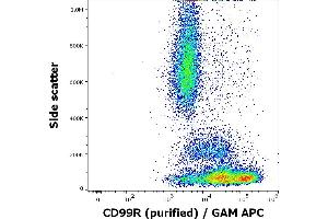 CD99 (E2, MIC2) is a transmembrane glycoprotein that is involved in regulation of T cell addhesive properties and programmed cell death distinct from typical apoptosis course. CD99 roles are specific to certain stages of T cell differentiation such as corticothymocytes. CD99R isoform expression is restricted in the haematopoietic system to T, NK and myeloid cells.,MIC2, HBA71, blood group Xg