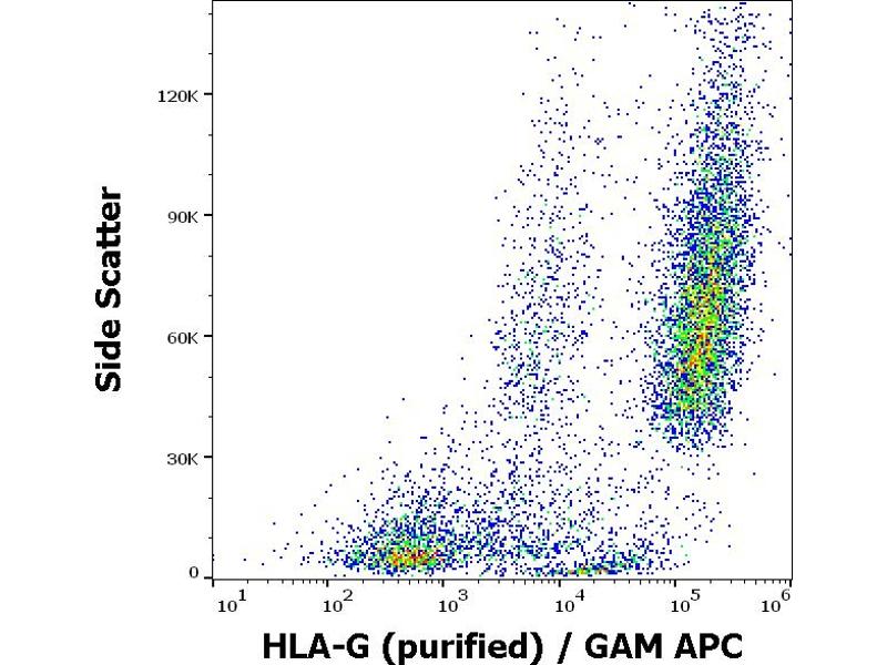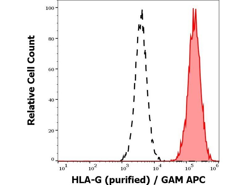 The antibody 01G recognizes membrane-bound form of HLA-G (full-length HLA-G1), but not soluble forms. HLA-G belongs to the MHC Class I molecules (MHC Class Ib, nonclassical) and it is expressed on the surface of trophoblast cells.