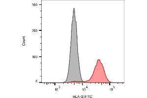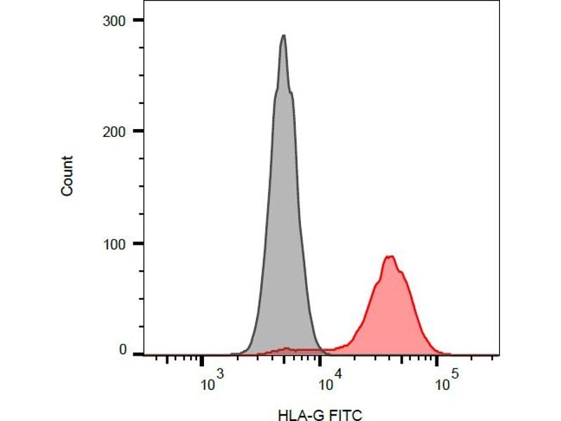 The antibody 01G recognizes membrane-bound form of HLA-G (full-length HLA-G1), but not soluble forms. HLA-G belongs to the MHC Class I molecules (MHC Class Ib, nonclassical) and it is expressed on the surface of trophoblast cells.