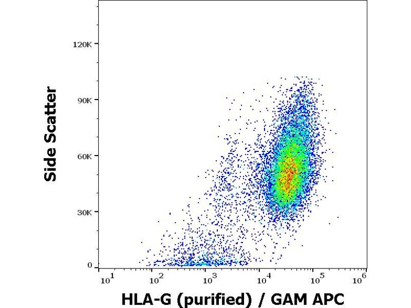 The antibody 2A12 was generated to a peptide corresponding to C-intron 4-encoded sequence. This antibody does not crossreact with the full-length HLA-G1 isoform and thus allows to distinguish between secreted HLA-G5 and HLA-G6 isoforms from shedded HLA-G1.