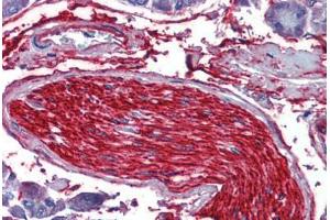 Usage: Immunohistochemistry: This antibody was validated for use in immunohistochemistry on a panel of 21 formalin-fixed, paraffin-embedded (FFPE) human tissues after heat induced antigen retrieval in pH 6.0 citrate buffer. After incubation with the primary antibody, slides were incubated with biotinylated secondary antibody, followed by alkaline phosphatase-streptavidin and chromogen. The stained slides were evaluated by a pathologist to confirm staining specificity. The optimal working concentration for this antibody was determined to be 10 μg/mL. -