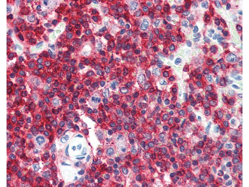 Usage: Immunohistochemistry: This antibody was validated for use in immunohistochemistry on a panel of 21 formalin-fixed, paraffin-embedded (FFPE) human tissues after heat induced antigen retrieval in pH 6.0 citrate buffer. After incubation with the primary antibody, slides were incubated with biotinylated secondary antibody, followed by alkaline phosphatase-streptavidin and chromogen. The stained slides were evaluated by a pathologist to confirm staining specificity. The optimal working concentration for this antibody was determined to be 1:50. The applications listed have been tested for the unconjugated form of this product. Other forms have not been tested. -