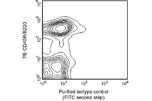 The 7G6 antibody recognizes an epitope shared by 145-150-kDa and 190-kDa complement receptor proteins, originally designated CR2 (CD21) and CR1 (CD35), respectively. In the mouse, CD21 and CD35 are expressed on the majority of peripheral B lymphocytes, on the majority of resident peritoneal macrophages and mast cells, on peripheral blood granulocytes after treatment with N-formyl-Met-Leu-Phe, and on follicular dendritic cells, but not on thymocytes, T cells, erythrocytes, or platelets. CD21 is a ligand-binding component of the CD19/CD21/CD81 signal-transduction complex associated with the antigen receptor on B lymphocytes. CD21/CD35 also co-localizes with CD19 on the surface of peritoneal mast cells. Cr2null mice display impaired inflammatory and humoral immune responses in vivo. The 7G6 mAb has been reported to inhibit rosette formation by C3d-bearing sheep erythrocytes, to block the complement dependent trapping of immune complexes by follicular dendritic cells, and to down-regulate mouse CD21/CD35 expression upon in vivo application, thus inhibiting primary antibody responses to immunization. Co-stimulation of B-cell differentiation via Sepharose-coupled 7G6 antibody has also been observed. The 7G6 mAb recognizes an epitope on CD35 distinct from the epitope recognized by anti-mouse CD35, clone 8C12 (ABIN967625, for the purified antibody), and it does not block binding of 8C12 mAb to mouse CD35. This antibody is routinely tested by flow cytometric analysis. Synonyms: CR2/CR1