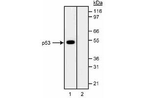 - P53 is a 53 kD nuclear phosphoprotein that acts as a tumor suppressor protein, and is involved in inhibiting cell proliferation when DNA damage occurs. The gene for p53 is the most commonly mutated gene yet identified in human cancers. Missense mutations occur in tumors of the colon, lung, breast, ovary, bladder and several other organs. The mutant p53 is overexpressed in a variety of transformed cells and wildtype p53 forms specific complexes with several viral oncogenes including SV40 large T, E1B from adenovirus, and E6 from human papilloma virus. Wildtype p53 plays a role as a checkpoint protein for DNA damage during the G1/S-phase of the cell cycle. However, it is still unclear, whether point mutated forms of p53 are simple null mutants and/or dominant negatively acting proteins. The DO-7 antibody recognizes human wildtype and mutant p53. It cross-reacts with bovine p53 but does not cross-react with mouse or rat p53. DO-7 recognizes an epitope between amino acids 1-45 of known forms of human p53. Human recombinant p53 protein was used as immunogen. Wildtype 53 proteins have a very short half-life and are usually not detectable with monoclonal antibodies (mAbs) in normal tissues.