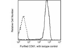 Reacts with integrin beta3, a 105 kDa transmembrane glycoprotein, expressed on platelets, megakaryocytes, osteoclasts and endothelia. Integrin beta3 associates with gpIIa (CD41) to form the CD41/CD61 complex which mediates platelet adhesion and aggregation. CD61 also associates with CD51 to form the CD51/CD61 complex (vitronectin receptor). CD61 appears to bind to fibrinogen, fibronectin, vWF, vitronectin, and thrombospondin to mediate cell adhesion. This antibody is routinely tested by flow cytometric analysis. Synonyms: Integrin beta3 Chain