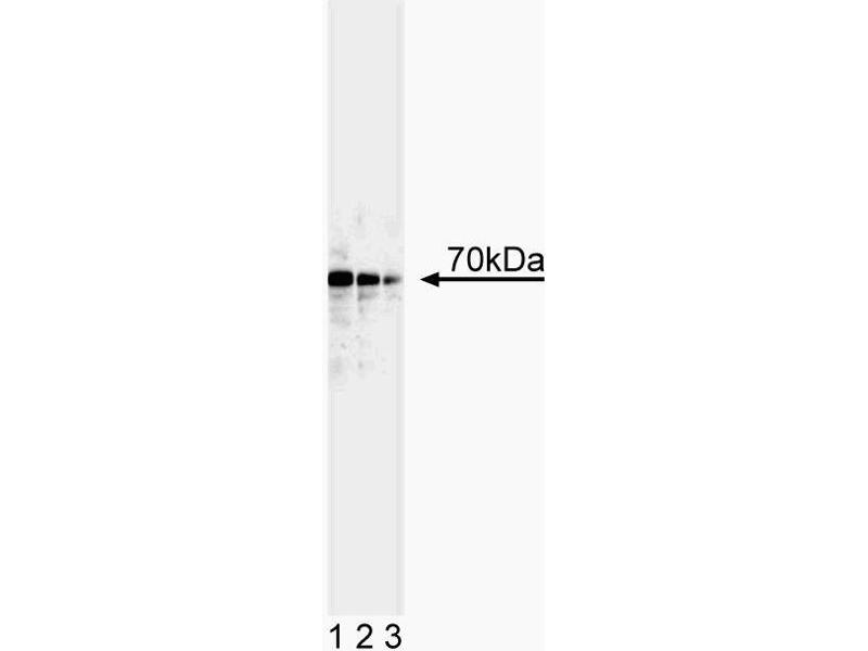 P53 is a tumor suppressor which acts as an S-phase checkpoint for DNA damage. The gene for p53 is the most commonly mutated gene identified in human cancers. Recently, a new member of the p53 family, p73, was identified. p73 is structurally homologous to p53 in several regions, including the p53 N-terminal transactivation domain and C-terminal oligomerization domains, as well as the region corresponding to the p53 DNA-binding domain. When overexpressed, p73 can promote p53-like functions, including induction of apoptosis and induction of transcription from p53-responsive promoters such as p21. Despite structural and apparent functional homology, data suggests that these proteins may have distinct functions as well. For example, viral oncoproteins such as Adenovirus E1B 55K and HPV E6, which bind to and thus inactivate p53 during the process of transformation, do not bind to p73. In addition, unlike p53, p73 expression is not induced by DNA damage, e.g. UV irradiation. Several p73 splice variants have been identified, including alpha (full-length), beta (missing exon 13), gamma (missing exon 11) and delta (missing exons 11, 12 and 13). Two hybrid analysis has shown variable interaction(s) between these isoforms in vitro. Many types of normal, tumor and virally-transformed cell lines express detectable levels of p73, however, the relative expression of p73 isoforms, as well as their functional activity, appears to be differentially regulated in various cell types. p73alpha and beta isoforms migrate at molecular weights of approximately 80 kDa (alpha) and 70 kDa (beta), respectively. The GC-15 antibody reacts with human p73alpha and beta. A fusion protein containing amino acids 380-367 of human p73alpha was used as immunogen.