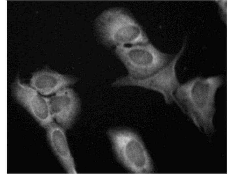 - The eukaryotic translation initiation factor 4E (eIF-4E) is a 25 kDa phosphoprotein that specifically binds to the 7-methylguanosine-containing cap of mRNA. eIF-4E is the rate-limiting component for the initiation of cap-dependent translation by the eIF-4E translation initiation complex. This complex promotes the unwinding of secondary structure at the 5' untranslated region of mRNA, which is necessary to expose and locate the AUG-initiation codon. Phosphorylation of eIF-4E on Ser-209 occurs after serum treatment in CHO cells, and may regulate its function. Overexpression of eIF-4E can lead to increased cell proliferation, transformation, and tumorigenesis in nude mice. The overexpression of a Ala-53 variant of eIF-4E cannot evoke these changes, suggesting that Ser-53 on eIF-4E participates in the transfer of mRNA to the 48S initiation complexes. In cooperation with nuclear oncogenes such as c-myc or E1A, eIF-4E transforms primary cells. Other studies have demonstrated that overexpression of eIF-4E causes activation of Ras and leads to a transformed phenotype. Subsequent overexpression of GAP then causes reversion of this phenotype. The mechanism by which eIF-4E plays a role in transformation is not clear, but it is postulated that high levels of eIF-4E may lead to the translation of mRNAs that are normally translationally repressed.