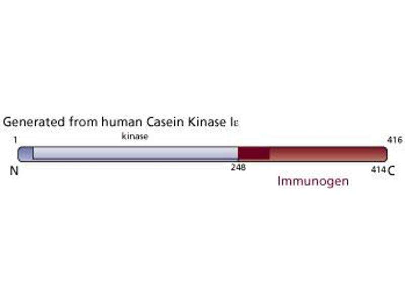 - Casein Kinase Iepsilon (CKIepsilon) is a product of a family of proteins involved in the regulation of various cytoplasmic and nuclear processes including DNA replication and repair. CKIepsilon is a 47.3 kDa serine/threonine kinase that plays a role similar to previously described CKI isoforms. It phosphorylates known CKI substrates, including a CKI-specific peptide. In addition, it is inhibited by CKI-7, an inhibitor of other CKI isoforms. CKIepsilon contains a core kinase domain of 285 amino acids which is 53-98% identical to other isoforms and is most similiar in structure to CKIdelta. Since various human and yeast CKI proteins exhibit both sequence and functional similarities, CKIepsilon may be involved in mammalian DNA metabolism.