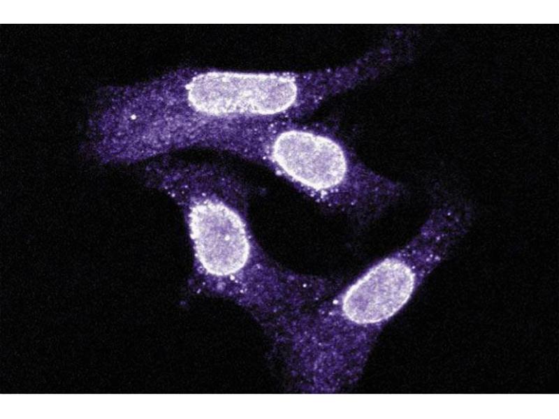 The nuclear pore complex (NPC) is a 125 MDa nuclear envelope complex that mediates nucleocytoplasmic shuttling of RNA and protein. NPC is comprised of more than 30 different proteins, including Ran/TC4, importins, and exportins . Exportin-1(hCRM1/XPO1) is the widely expressed human homologue of the yeast CRM1 protein, which functions in the maintenance of chromatin structure and nuclear export. Exportin-1 has an N-terminal CRIME domain that is homologous to yeast CRM1 and importin-beta. Intracellular localization of Exportin-1 shows association with the NPC and overexpression of Exportin-1 in Xenopus oocytes stimulates Rev and U snRNA export from the nucleus. Exportin-1 also binds other nuclear transport related proteins, such as RanGTP, snurportin-1, and the nucleoporins CAN/Nup214 and Nup50. Overexpression of CAN leads to sequestration of Exportin-1 in the nucleoplasm, which inhibits cell growth and induces apoptosis. In addition, Exportin-1 may export specific proteins, such as Rev and PKI, via binding to a leucine-rich nuclear export signal (NES). Thus, Exportin-1 is an important protein and RNA nuclear export receptor, which may be required for normal cell growth and survival. This antibody is routinely tested by western blot analysis.