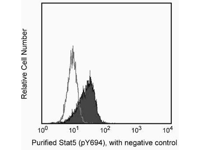 The 47 monoclonal antibody recognizes the phosphorylated Y694 of Stat5a. The homologous phosphorylation site in Stat5b is Y699. -