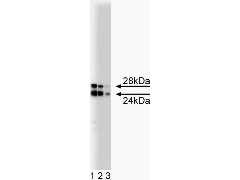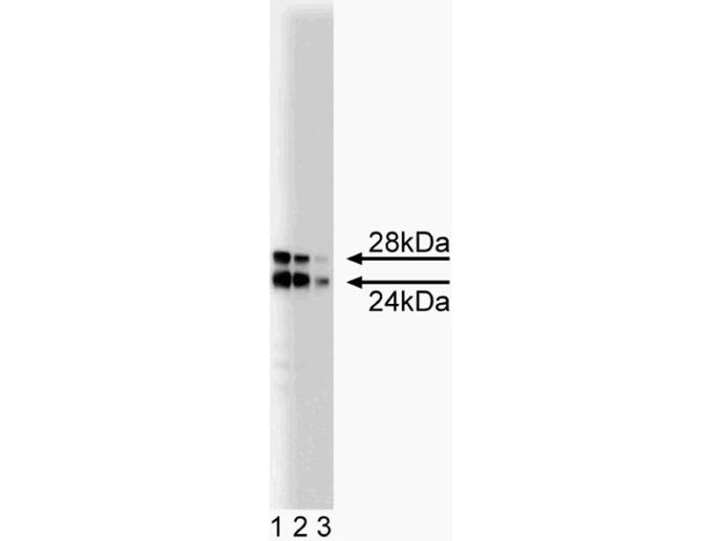 Catechol-O-methyltransferase (COMT) and monoamine oxidase (MAO) are the major mammalian enzymes involved in the degradation of the catecholamine neurotransmitters, dopamine, norepinephrine, and epinephrine. COMT is a Mg2+-dependent enzyme that catalyzes the transfer of methyl groups from S-adenosyl methionine to a hydroxyl group of a catecholic substrate. Two forms of COMT are found in rat brain, a 24 kDa soluble COMT (S-COMT) and a 28 kDa membrane-bound COMT (MB-COMT). COMT is widely expressed in brain, but its importance in catecholamine neurotransmitter degradation relative to MAO varies in different brain regions. In addition, COMT may function primarily in extraneuronal areas, such as in glial cells and postsynaptic neurons. COMT-deficient mice have sex- and region-specific alterations in dopamine levels in the brain, and display impaired emotional reactivity and aggressive behavior. Thus, COMT-mediated degradation of catecholamines in the brain may have important roles in maintaining normal catecholamine levels, as well as normal social behavior. This antibody is routinely tested by western blot analysis.